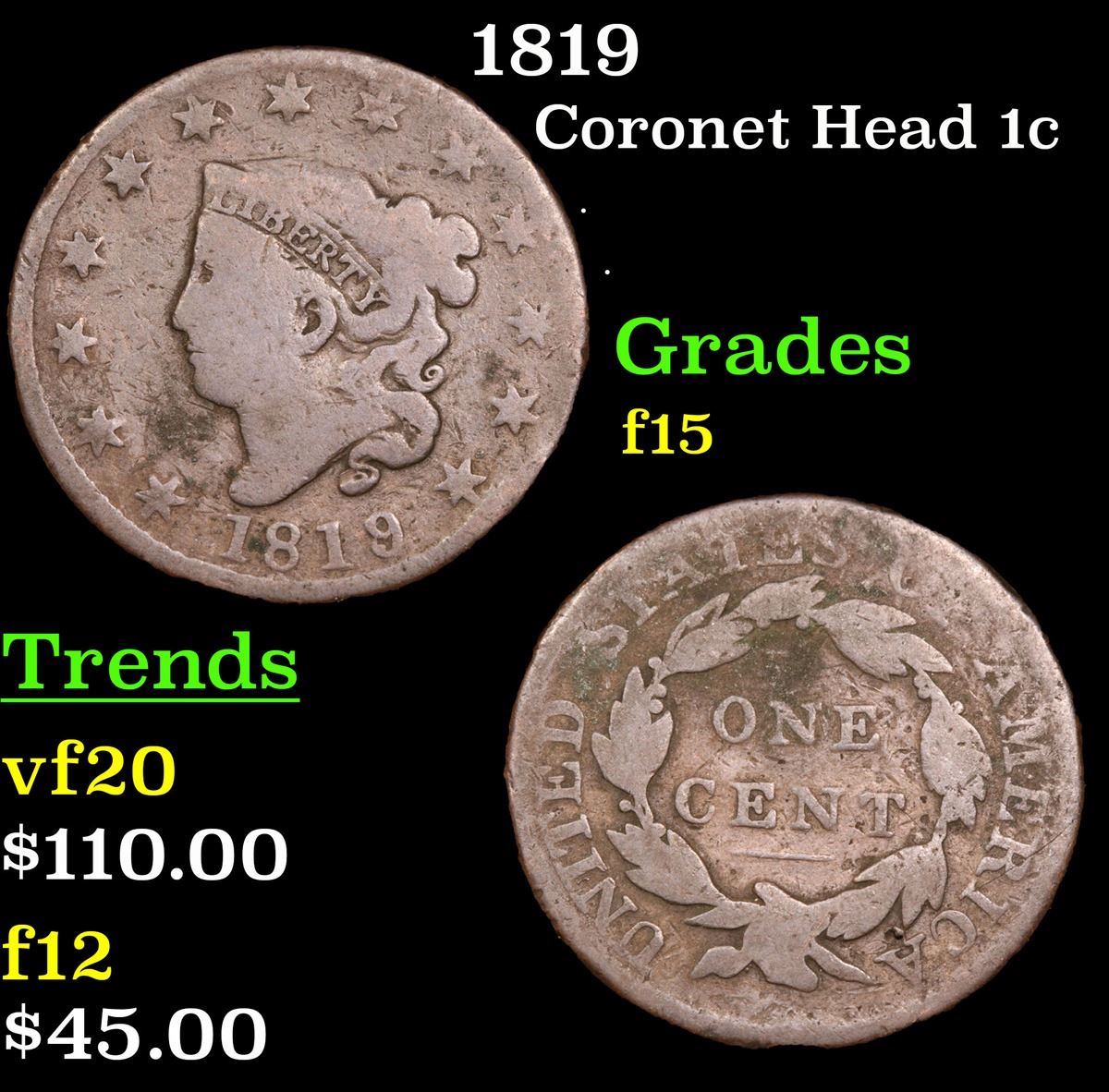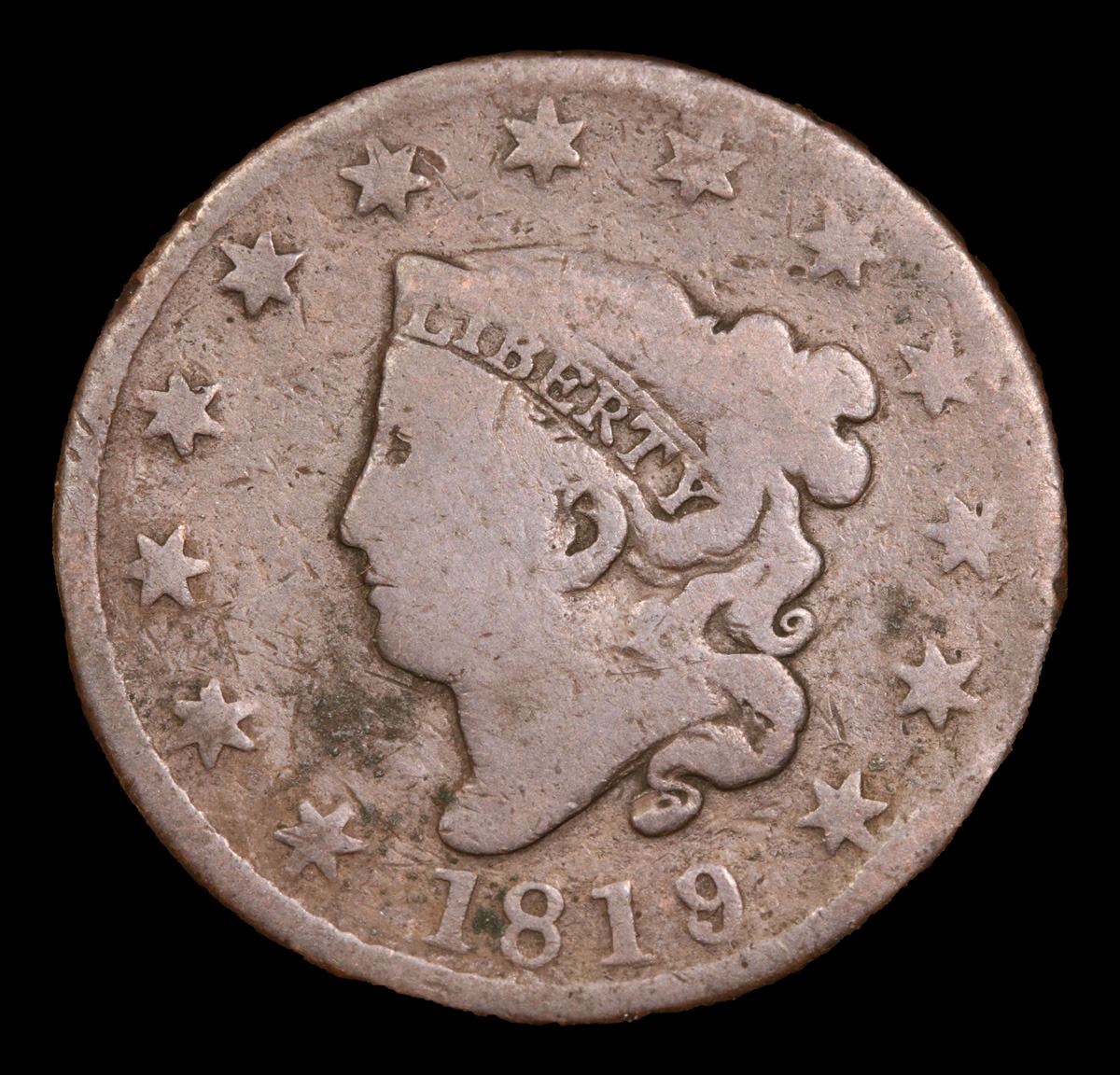 1819 . . Coronet Head Large Cent 1c Grades f+.