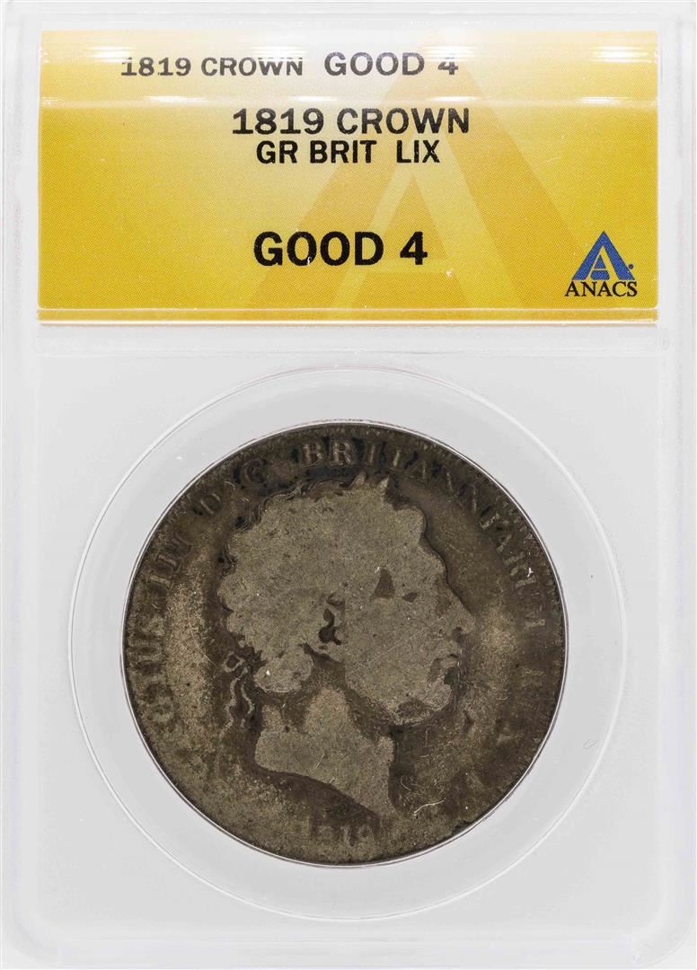One 1819 Great Britain Crown LIX Silver Coin ANACS G4. ANACS Certified.