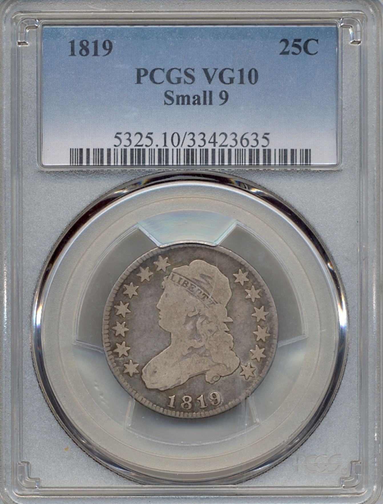 One 1819 Liberty Bust Quarter Coin PCGS VG10.