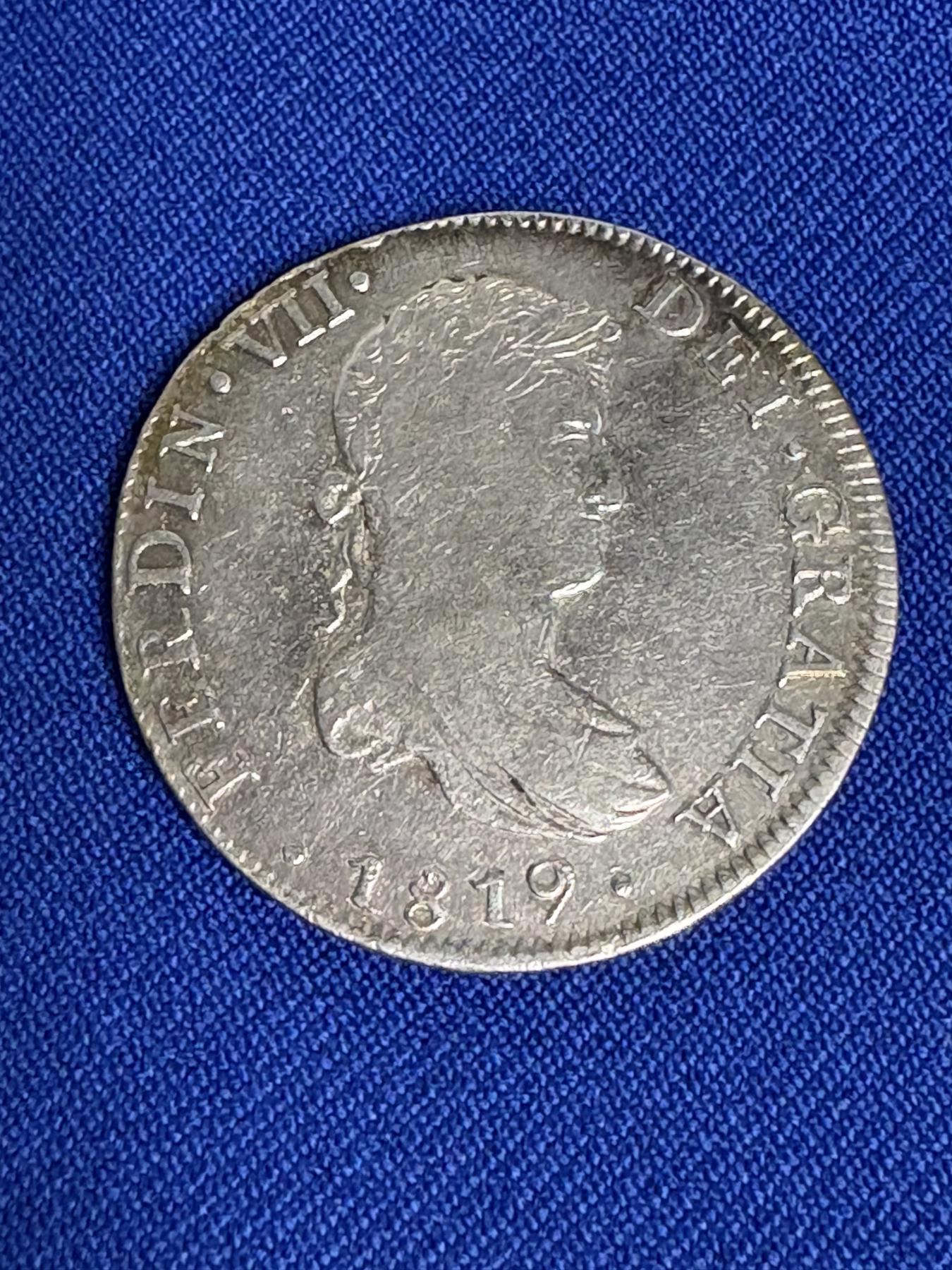 1819 Mexico Silver Ferdin VII Coin - DEI - Gratia - Hispan - ET IND - REX - M - 8R -II
