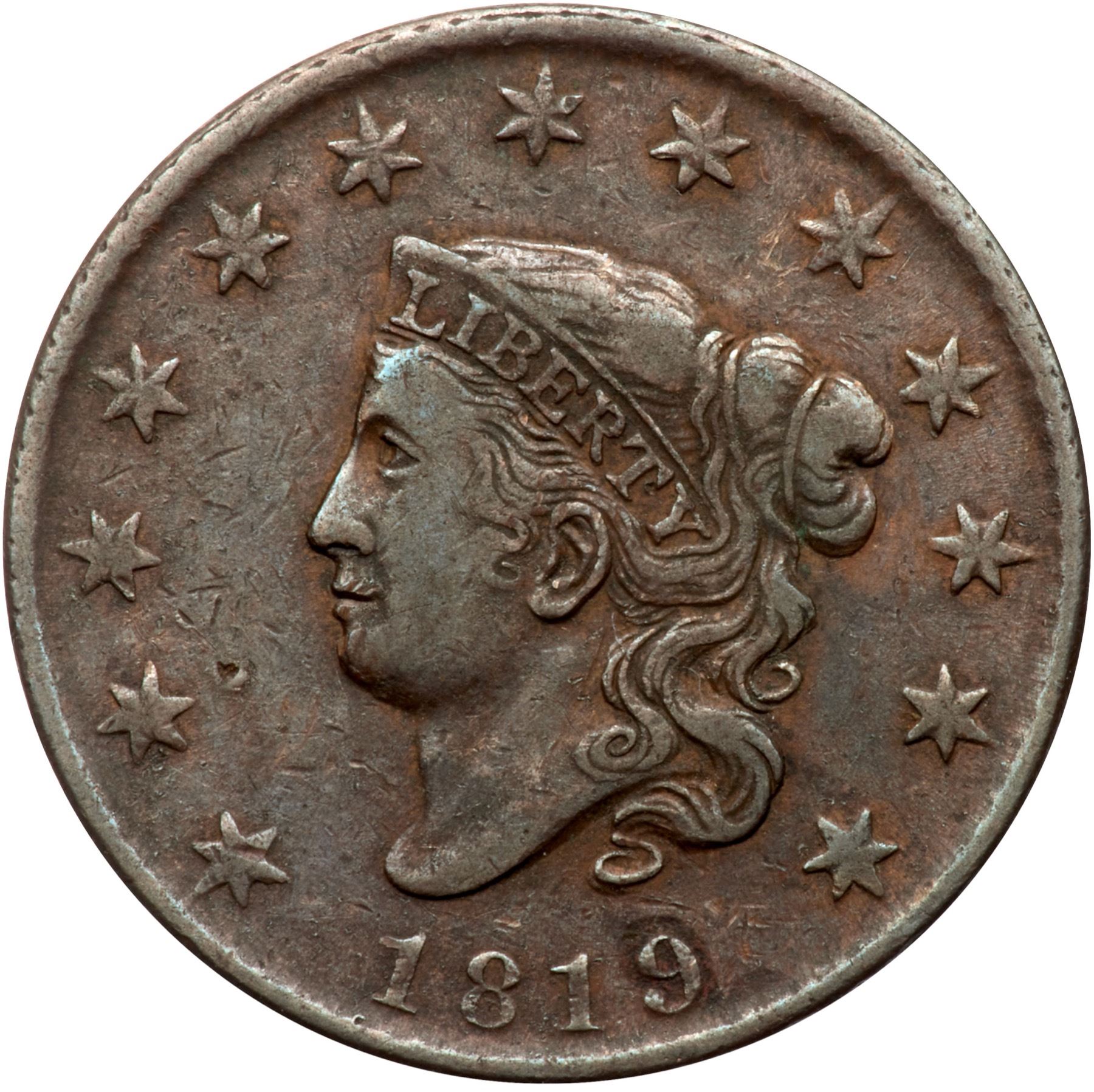 Medium to light brown steel. Some minor granularity distinct from the always present rusted reverse. A decent example of this scarce variety.