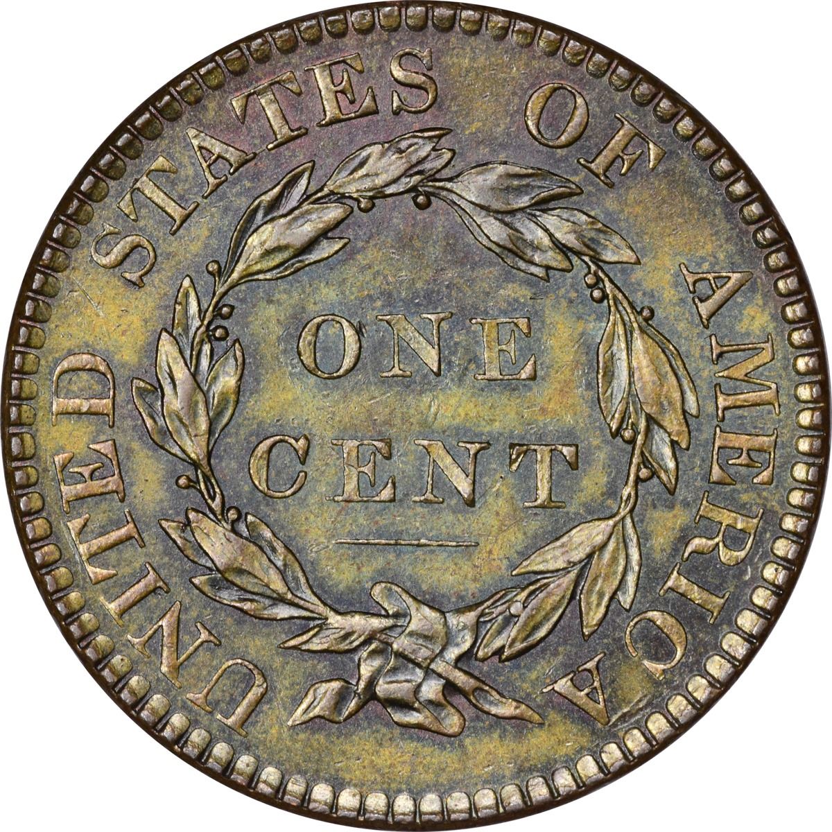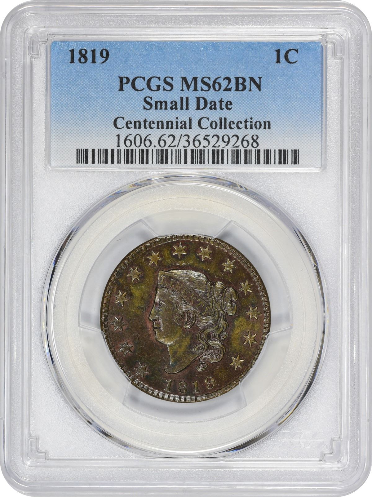 Satiny and lustrous coffee-brown with underlying pale orange frost. Nicely struck and just a few scattered from a finer grade designation. This variety was represented in the Randall Hoard.