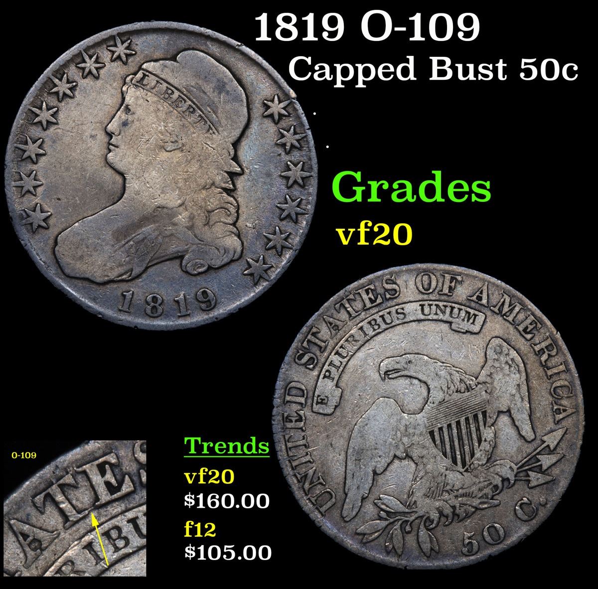 1819 O-109 Capped Bust Half Dollar 50c Grades vf, very fine.