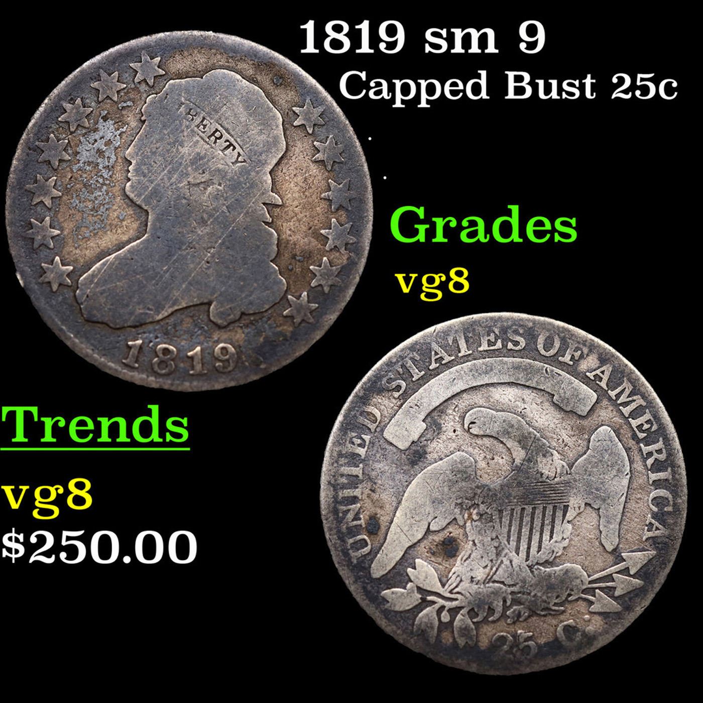 1819 sm 9 Capped Bust Quarter 25c Grades vg, very good.