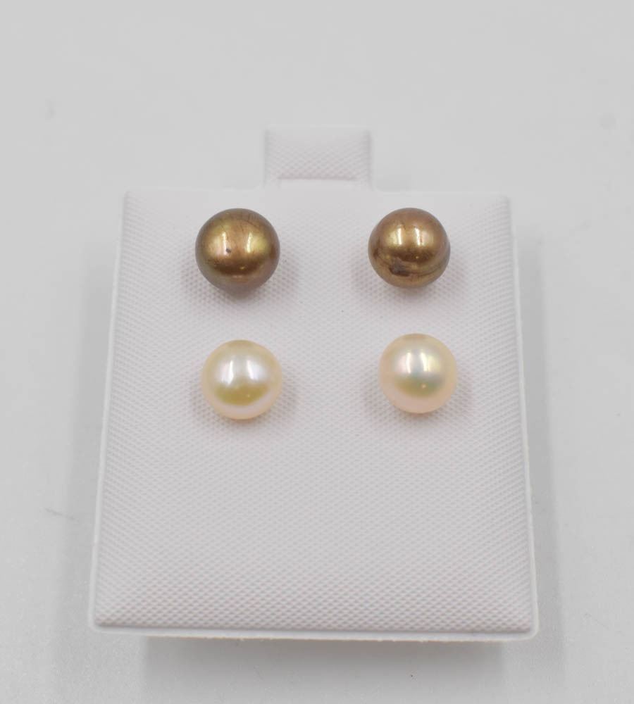 #182-NATURAL AKOYA PEARL STUD EARRINGS 2 PAIRS