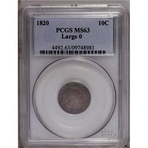 1820 10C Large 0 MS63 PCGS. JR-8, R.3. 1820[10C] Large 0 MS63 PCGS.