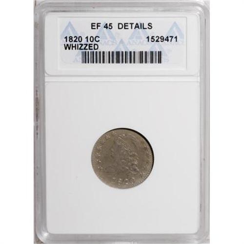 <B>1820 10C Large 0--Whizzed--ANACS. XF45 Details.</B></I> NGC Census: (7/173). PCGS Population (3/117). Mintage: 942,587. Numismedia Wsl. Price: $359. (#4492)<BR><BR><B>Coin Engraver:</B> John Reich<BR><BR><b>Shipping:</b> Coins & Currency (<a target="_blank" href="http://www.heritageauctions.com/common/shipping.php">view shipping information</a>\)