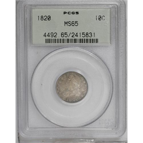 1820 10C Medium 0 MS65 PCGS. JR-11, R.3. Dusky golden-