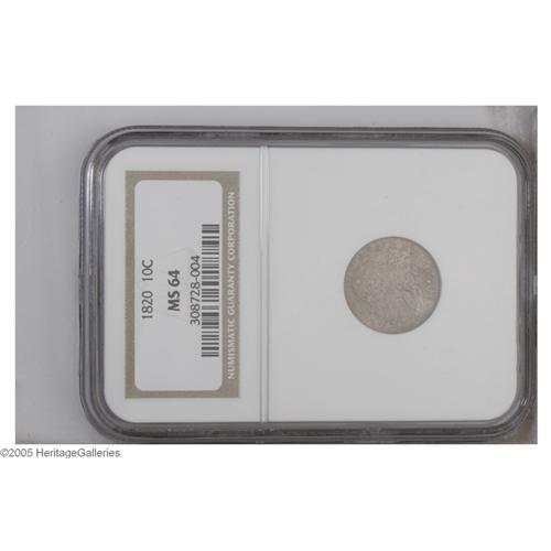 1820 10C Small 0 MS64 NGC. JR-3, R.4. Attributed by th 1820[10C] Small 0 MS64 NGC.