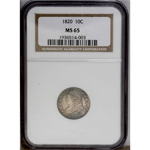 1820 10C Small 0 MS65 NGC. JR-2, R.3. While this is a 1820[10C] Small 0 MS65 NGC.