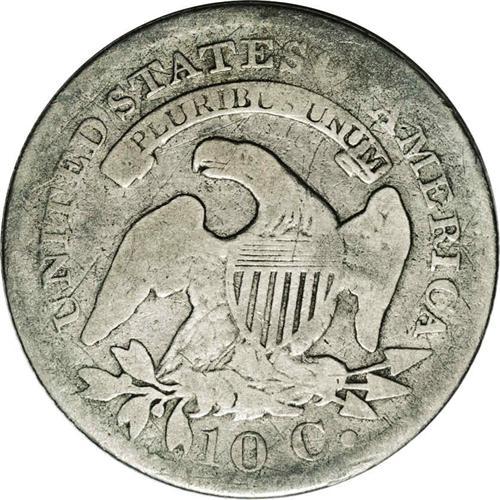 <B>1820<10C> Small 0 JR-5, R.4. Reiver state a. VG8 NGC.</B></I> Light silver on the devices, darker in the fields. Examination will find a thin scratch on Liberty's face, and a few more on the reverse. The obverse has the outer point notched on each of the stars, and this was the John Reich's signature star punch, although Reich normally signed his dies by using the notched star only for the thirteenth star. Perhaps another engraver made this die and used Reich's "signature star punch" to engrave all the stars.<BR><I> Purchased at the FUN Show (January 1984).</B></I> Envelope Included.