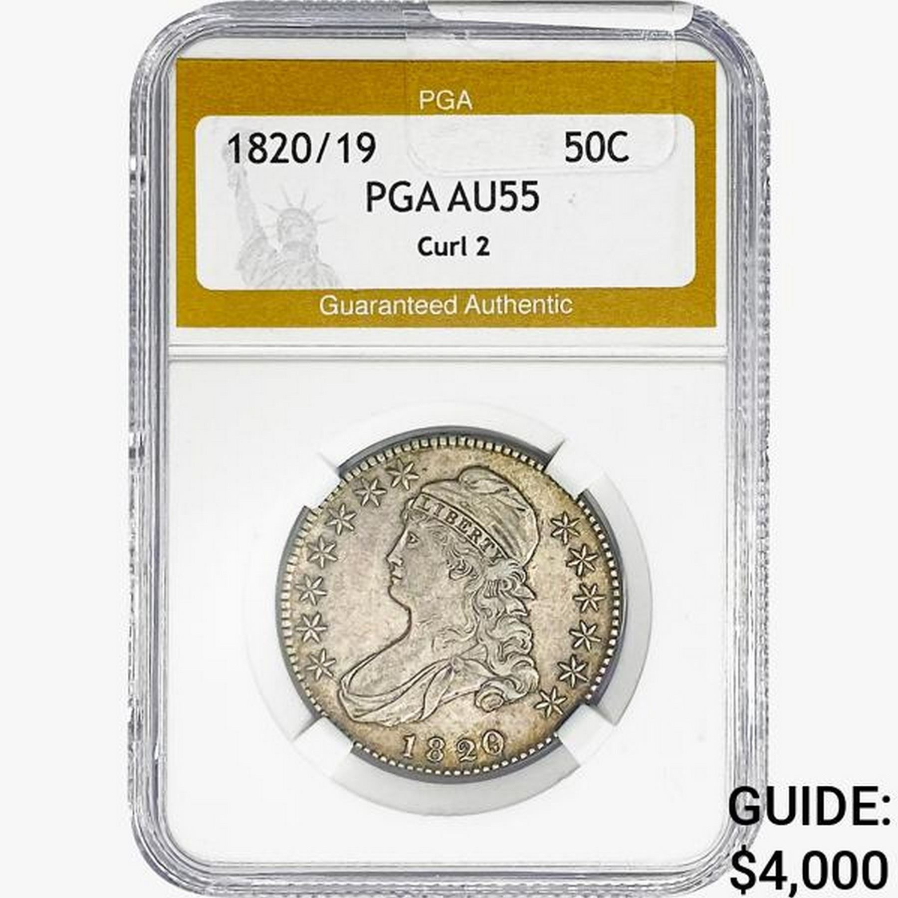 1820/19 Capped Bust Half Dollar PGA AU55 CURL 2