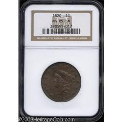 <table><tr><td><TABLE cellSpacing=0 cellPadding=0 width="100%" bgColor=#000000 border=0><TBODY> <TR><TD width="100%"><TABLE cellSpacing=1 cellPadding=3 width="100%" border=0><TBODY><TR><TD width="100%" bgColor=#79735c><FONT face=arial color=#ffffff size=3><B>Description</B> </FONT></TD></TR><TR><TD width="100%" bgColor=#ffffff><FONT face=arial size=2><B>1820 1C Large Date MS65 Brown NGC.</B></I> N-13, R.1. Shimmering luster illuminates the copper-gold and olive-brown surfaces. The major devices are well struck, although the majority of the stars lack bold centrils. A tiny spot is centered in the left obverse field, but an imposing Gem nonetheless. </FONT></TD></TR></TBODY></TABLE></TD></TR></TBODY></TABLE><BR><A name=PricesRealized></A><TABLE cellSpacing=0 cellPadding=0 width="100%" bgColor=#000000 border=0><TBODY><TR><TD width="100%"><TABLE cellSpacing=1 cellPadding=3 width="100%" border=0><TBODY><TR><TD width="100%" bgColor=#79735c><A name=PR><FONT face=arial color=#ffffff size=3><B>Previous Prices from Heritage Auctions</B> </FONT></A></TD></TR><TR><TD bgColor=#f6f6ed><TABLE cellSpacing=0 cellPadding=0 width="100%" border=1><TBODY><TR><TD align=middle width="33%"><B>Date</B></TD><TD align=middle width="33%"><B>Service</B></TD><TD align=middle width="33%"><B>Price</B></TD></TR><TR bgColor=whitesmoke><TD width="33%"><B>05/31/2003</B></TD><TD width="33%">PCGS</TD><TD width="33%">$862.50</TD></TR><TR bgColor=whitesmoke><TD width="33%"><B>05/31/2003</B></TD><TD width="33%">PCGS</TD><TD width="33%">$862.50</TD></TR><TR bgColor=whitesmoke><TD width="33%"><B>05/03/2003</B></TD><TD width="33%">PCGS</TD><TD width="33%">$862.50</TD></TR><TR bgColor=whitesmoke><TD width="33%"><B>01/11/2003</B></TD><TD width="33%">PCGS</TD><TD width="33%">$977.50</TD></TR><TR bgColor=whitesmoke><TD width="33%"><B>01/11/2003</B></TD><TD width="33%">PCGS</TD><TD width="33%">$977.50</TD></TR><TR bgColor=whitesmoke><TD width="33%"><B>01/11/2003</B></TD><TD width="33%">PCGS</TD><TD width="33%">$862.50</TD></TR><TR bgColor=whitesmoke><TD width="33%"><B>11/23/2002</B></TD><TD width="33%">NGC</TD><TD width="33%">$718.75</TD></TR><TR bgColor=whitesmoke><TD width="33%"><B>11/23/2002</B></TD><TD width="33%">NGC</TD><TD width="33%">$718.75</TD></TR><TR bgColor=whitesmoke><TD width="33%"><B>09/30/2002</B></TD><TD width="33%">ANACS</TD><TD width="33%">$862.50</TD></TR><TR bgColor=whitesmoke><TD width="33%"><B>07/30/2002</B></TD><TD width="33%">PCGS</TD><TD width="33%">$747.50</TD></TR><TR bgColor=whitesmoke><TD width="33%"><B>07/30/2002</B></TD><TD width="33%">PCGS</TD><TD width="33%">$747.50</TD></TR><TR bgColor=whitesmoke><TD width="33%"><B>07/30/2002</B></TD><TD width="33%">PCGS</TD><TD width="33%">$920.00</TD></TR><TR bgColor=whitesmoke><TD width="33%"><B>07/30/2002</B></TD><TD width="33%">PCGS</TD><TD width="33%">$1,207.50</TD></TR><TR bgColor=whitesmoke><TD width="33%"><B>07/30/2002</B></TD><TD width="33%">PCGS</TD><TD width="33%">$1,207.50</TD></TR><TR bgColor=whitesmoke><TD width="33%"><B>01/05/2001</B></TD><TD width="33%">PCGS</TD><TD width="33%">$862.50</TD></TR><TR bgColor=whitesmoke><TD width="33%"><B>09/26/1998</B></TD><TD width="33%">NGC</TD><TD width="33%">$603.75</TD></TR><TR bgColor=whitesmoke><TD width="33%"><B>09/26/1998</B></TD><TD width="33%">NGC</TD><TD width="33%">$603.75</TD></TR><TR bgColor=whitesmoke><TD width="33%"><B>08/07/1998</B></TD><TD width="33%">PCGS</TD><TD width="33%">$718.75</TD></TR><TR bgColor=whitesmoke><TD width="33%"><B>06/01/1996</B></TD><TD width="33%">NGC</TD><TD width="33%">$577.50</TD></TR><TR bgColor=whitesmoke><TD width="33%"><B>06/01/1996</B></TD><TD width="33%">NGC</TD><TD width="33%">$577.50</TD></TR><TR bgColor=whitesmoke><TD width="33%"><B>03/04/1995</B></TD><TD width="33%">PCGS</TD><TD width="33%">$605.00</TD></TR><TR bgColor=whitesmoke><TD width="33%"><B>03/04/1994</B></TD><TD width="33%">NGC</TD><TD width="33%">$550.00</TD></TR><TR bgColor=whitesmoke><TD width="33%"><B>03/04/1994</B></TD><TD width="33%">NGC</TD><TD width="33%">$550.00</TD></TR></TBODY></TABLE></TD></TR><TR><TD bgColor=#ffffff><FONT face=arial size=1 ?>PLEASE NOTE: All prices realized reflect the final hammer price PLUS the buyer's premium in auctions that charge a buyer's premium. Each item has a notation at the top of the listing indicating whether that lot included a buyer's premium. Example: A item that sells with a final hammer price of $100 and a 20% buyer's premium will display with a price realized of $120. All information listed is intended to be as accurate as possible, but errors are possible. Please use this guide carefully and inform us of any inaccuracies. </FONT></TD></TR></TBODY></TABLE></TD></TR></TBODY></TABLE><BR><TABLE cellSpacing=0 cellPadding=0 width="100%" bgColor=#000000 border=0><TBODY><TR><TD width="100%"><TABLE cellSpacing=1 cellPadding=3 width="100%" border=0><TBODY><TR><TD width="100%" bgColor=#79735c colSpan=6><FONT face=arial color=#ffffff size=3><B>Price Guide*</B> </FONT></TD></TR><TR bgColor=#f6f6ed><TD align=middle><B>Grade</B> </TD><TD align=middle><B>Coin World<BR>(Trends)</B> </TD><TD align=middle><B>Numismedia<BR>Retail</B> </TD><TD align=middle><B>Numismedia<BR>Wholesale</B> </TD><TD align=middle><B>Coin<BR>Universe</B> </TD><TD align=middle><B>Heritage<BR>Value Index</B> </TD></TR><TR bgColor=#ffffff><TD align=middle>64</TD><TD align=right>---</TD><TD align=right>$563.00</TD><TD align=right>$450.00</TD><TD align=right>$555.00</TD><TD align=right>$449.67</TD></TR><TR style="FONT-WEIGHT: bold" bgColor=#cccfdd><TD align=middle>65</TD><TD align=right>---</TD><TD align=right>---</TD><TD align=right>$850.00</TD><TD align=right>$950.00</TD><TD align=right>$755.67</TD></TR><TR bgColor=#ffffff><TD align=middle>66</TD><TD align=right>---</TD><TD align=right>---</TD><TD align=right>$1,350.00</TD><TD align=right>$2,100.00</TD><TD align=right>$1,568.75</TD></TR><TR bgColor=#ffffff><TD colSpan=6><FONT size=1>*All information listed is intended to be as accurate as possible, but e