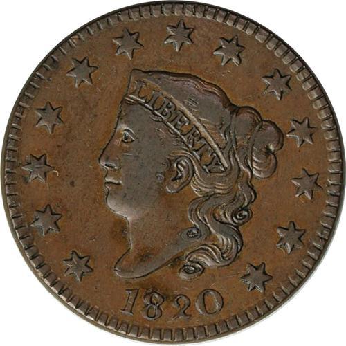 1820 1C Large Date VF35 NGC. N-10, Low R.2. The R and 1820[1C] Large Date. N-10, Low R.2. VF35 NGC.