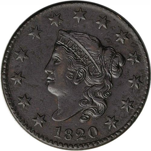 1820 1C Small Date--Environmental Damage--NCS. AU Deta 1820[1C] Small Date. N-5, R.3--Environmental