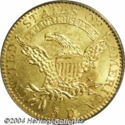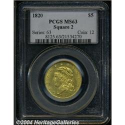 <B>1820<$5> Square 2 MS63 PCGS.</B></I> Breen-6476, B. 1-A, Miller-130, R.6. Although scarcer than the 1813 due to a lower survival rate, the 1820 Capped Head Left has the highest production of the type. The mintage of 263,806 pieces created at least nine separate die marriages, four of which possess a Square Base 2 in the date. All four varieties are very rare, in fact, no Square Base 2 has appeared in a Heritage Signature Sale since January 2000. Since the Curl Base 2 is equally elusive, the 1820 poses a formidable challenge to the date collector and provides a lifetime of hunting for those few who dare to collect by die marriage. This well struck greenish-gold representative exhibits extensive shimmering luster. A short pinscratch near the tenth star is mentioned primarily for pedigree purposes. An opportunity for the early gold specialist, since a Select Miller-130 may not surface again for several years. <BR><BR><B>Important notice:</B> Heritage usually auctions material at the rate of 200-250 lots per hour. On some occasions eBay Live bid software or the Internet may not be able to keep up with the pace of the auction. We recommend placing a realistic absentee bid now as insurance to avoid disappointment. Occasionally the auctioneer may eliminate or reject an eBay Live bid, and the auctioneer may also reopen a lot after the close of the eBay live bidding (usually because we missed an audience bid), and may reject your bid even if it shows you as the winning bidder. By bidding via eBay Live, you agree that Heritage may award the lot to another bidder at its sole discretion under the circumstances described above or any other reasonable circumstances. Since eBay bids are not shown to us until we open the lot on the floor, we treat those bids just like floor bids. In most cases the floor responds before the eBay bid is presented to us, due to Internet lag time, so for consistency we have made it a policy that floor bids are always considered first over tie eBay live bids. Also please note that all Heritage lots purchased through eBay Live carry a 20% Buyer's Premium. Please make sure you read the Terms and Conditions before you bid. </span></font></tr></table></td></tr></table>