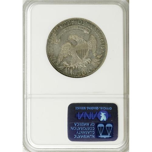 1820 50C Square Base Knob 2, Large Date AU55 NGC. O-10
