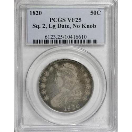 1820 50C Square Base No Knob 2, Large Date VF25 PCGS
