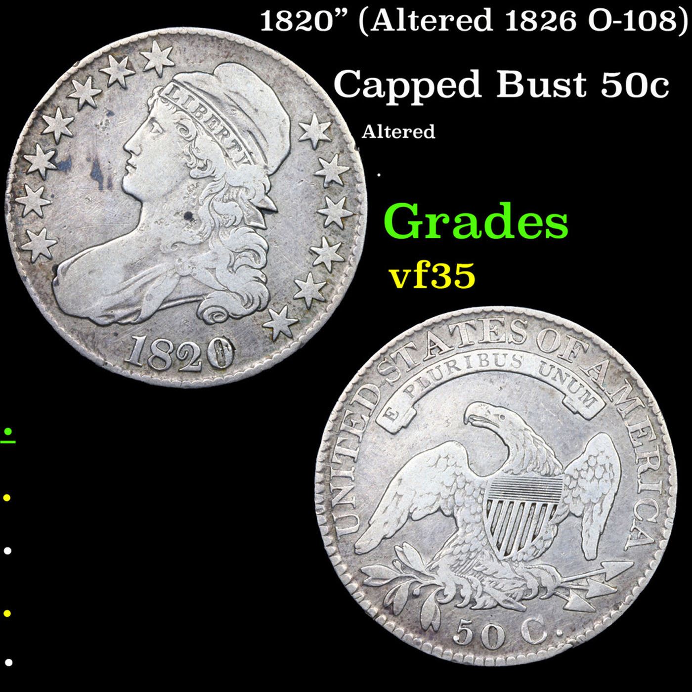 "1820" (Altered 1826 O-108) Capped Bust Half Dollar 50c Grades vf++.