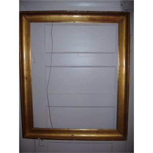 Very nice American Neoclassical circa 1820's 1830's Thomas Sully type 22k gold leaf portrait frame. The frame has a very nice Classical molding. A nice American portrait would look great in it. This type of molding was favored by the great 19th century American English Artist Thomas Sully for his portraits. The good thing about this frame is it has about 90% of it's original gold leaf. The gold leaf has a very nice mellow color and nice patina where the gold is worn and the red bole shows thru. The is the real thing in the true gold leaf process with a wood frame covered in gesso than red bole and than burnished with 22k gold leaf. The frames does have a few nicks and some touch ups. Other than that the Condition is very good . Dimensions: Outside of frame is 38" by 32 the inside frame is 25" 1/2 by 31" 1/2. The molding is 3" 1/5 wide.