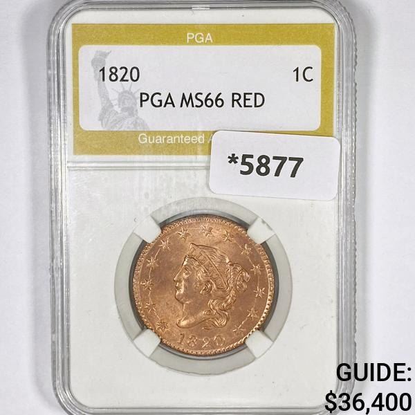 1820 Coronet Head Large Cent PGA-MS66 RED
