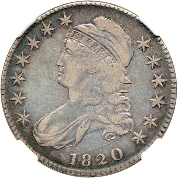 1820. Curl base 2, small date. O-103a. NGC graded VF Details, rev spot removed.