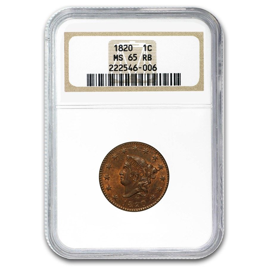 1820 Large Cent MS-65 NGC (Red/Brown)