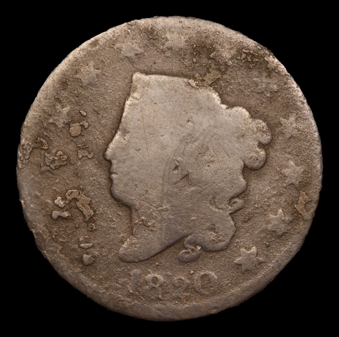 1820 Large Date Coronet Head Large Cent 1c Grades g, good.