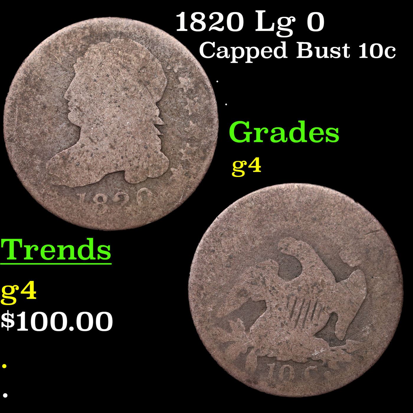 1820 Lg 0 Capped Bust Dime 10c Grades g, good