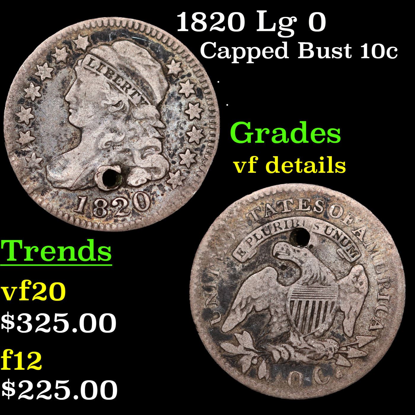 1820 Lg 0 Capped Bust Dime 10c Grades vf details.