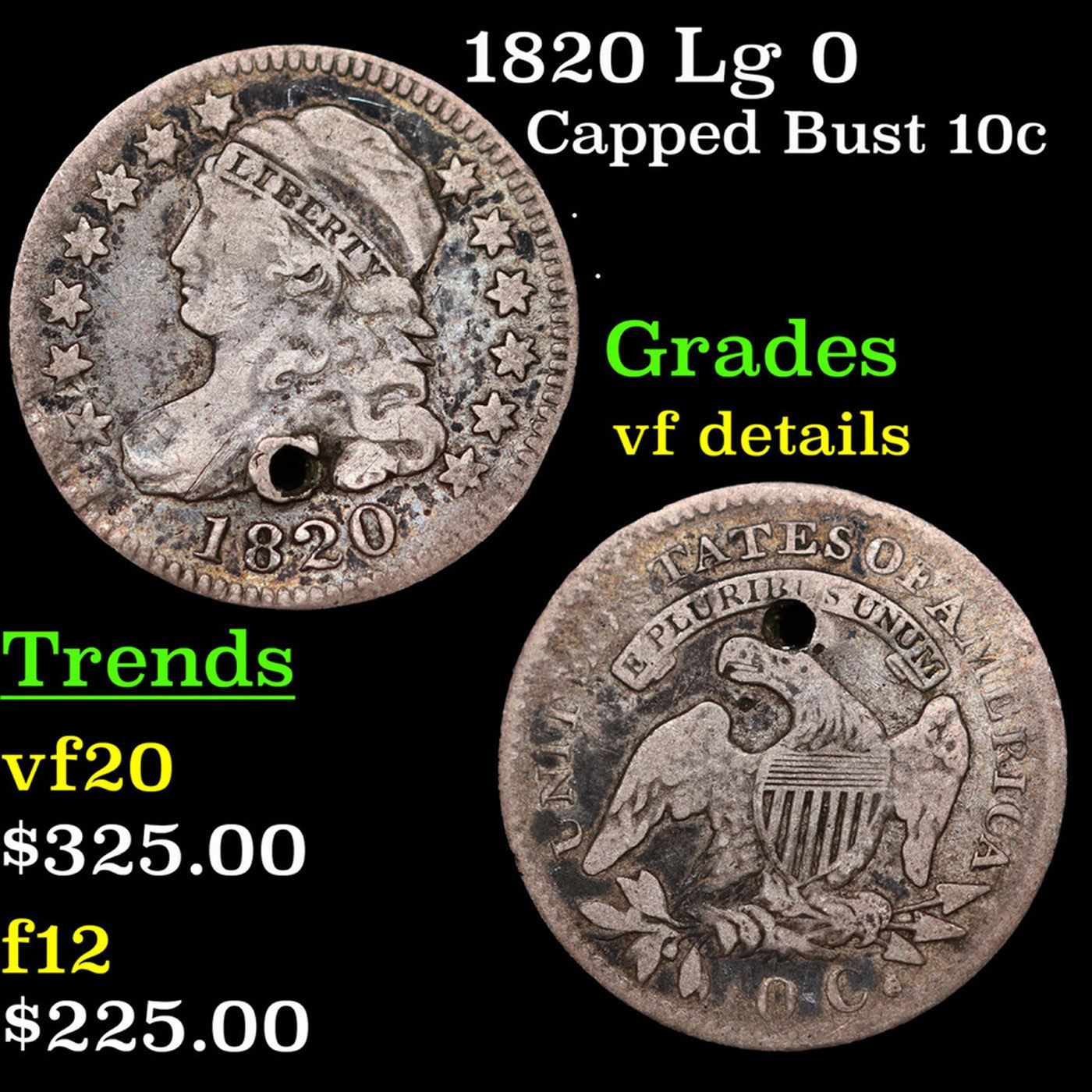 1820 Lg 0 Capped Bust Dime 10c Grades vf details.