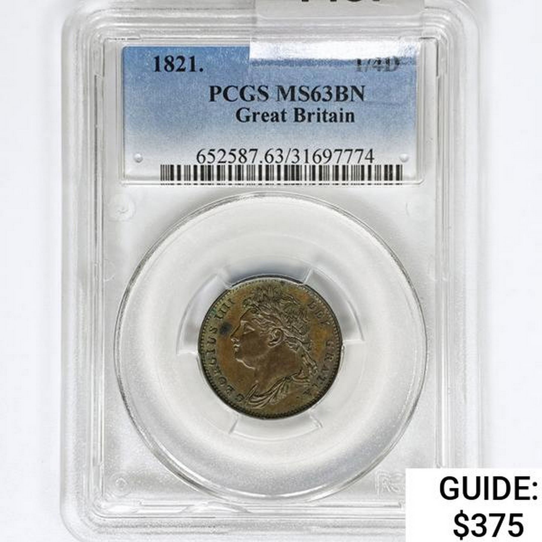 1821 1 Farthing G.Britain Copper PCGS MS63 BN