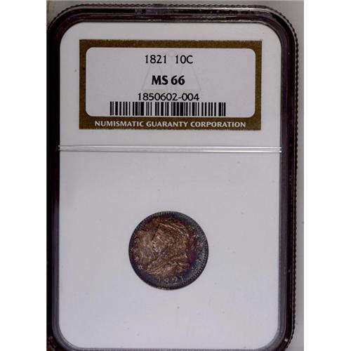 1821 10C Large Date MS66 NGC. JR-5, R.3. This is an ex 1821