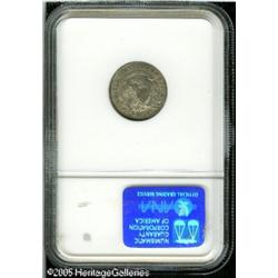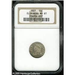 <B>1821 10C Small Date MS61 NGC.</B></I> JR-10, R.3. Ex: Eliasberg. Glimpses of chestnut color adorn this crisply struck and satiny example. A wispy pinscratch crosses the neck, otherwise unabraded. The admittedly dated John Reich reference states, "This is a scarce variety and is difficult to locate in high grades. Possibly three specimens exist in mint state."<BR><I>Ex: Louis E. Eliasberg, Sr. Collection (Bowers and Merena, 5/96), lot 1069.</B></I> Lot:6184