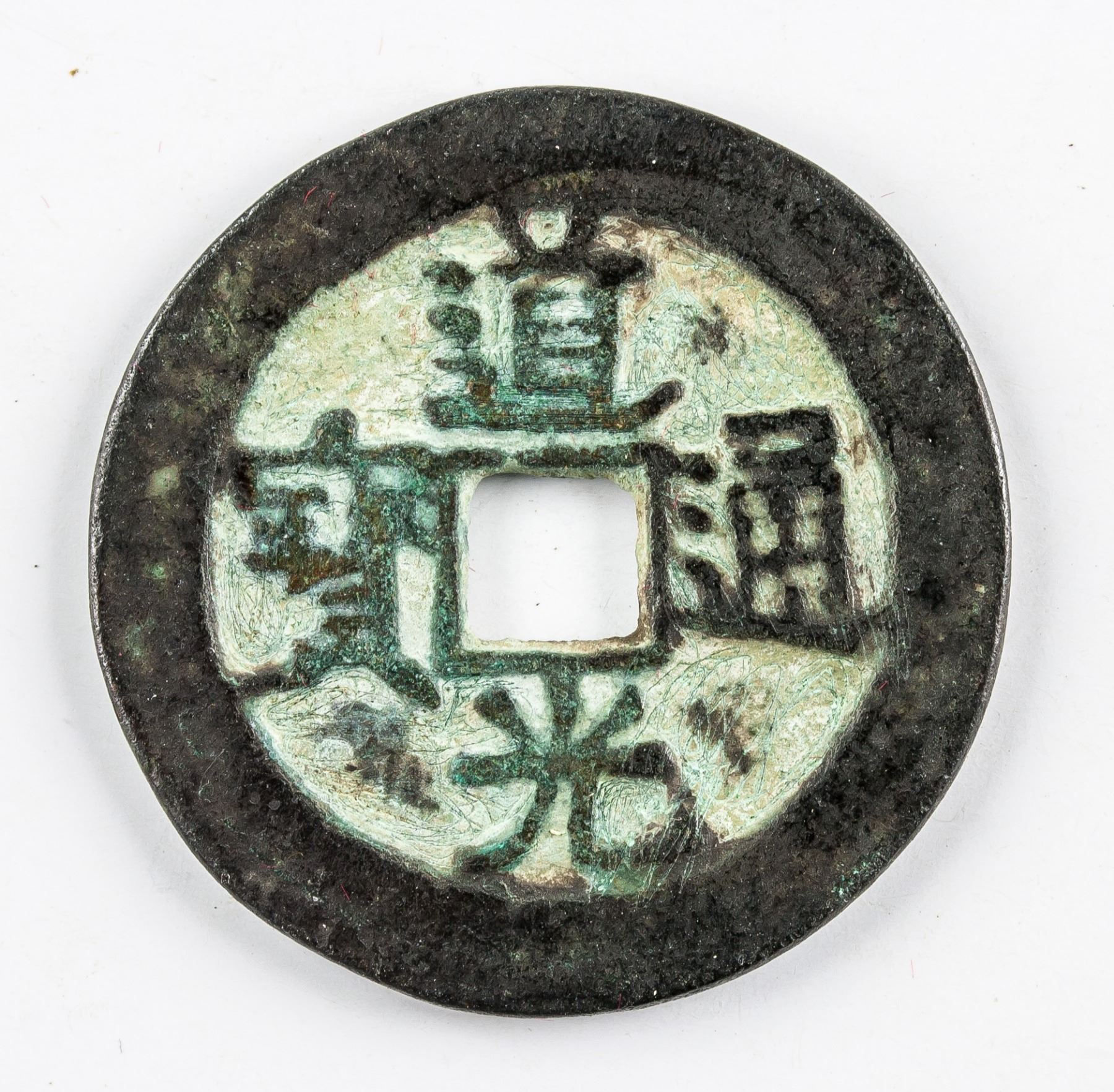 1821-1850 Chinese Qing dynasty 3 Cash bronze coin, Xinjiang Aksu mint, obverse lettering Dao Guang Tong Bao, reverse lettering Asku in Manchu, D: 30.65 mm, 8.09 grams