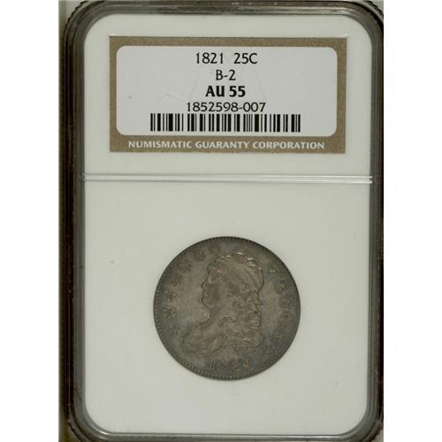 1821 25C AU55 NGC. B-2, R.4. This is the first appeara