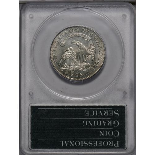1821 25C AU55 PCGS. B-1, R.2. Luster dominates the bor