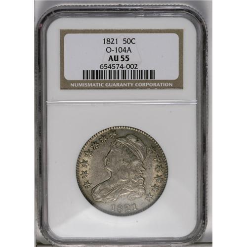 1821 50C AU55 NGC. O-104a, R.2. Ample luster penetrate 1821