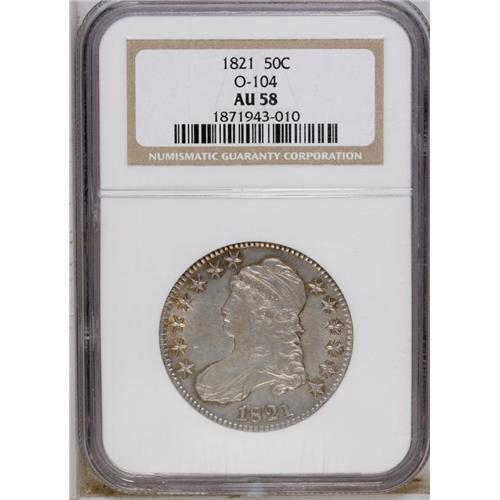 1821 50C AU58 NGC. O-104a, R.2. Listed as O-104 on the