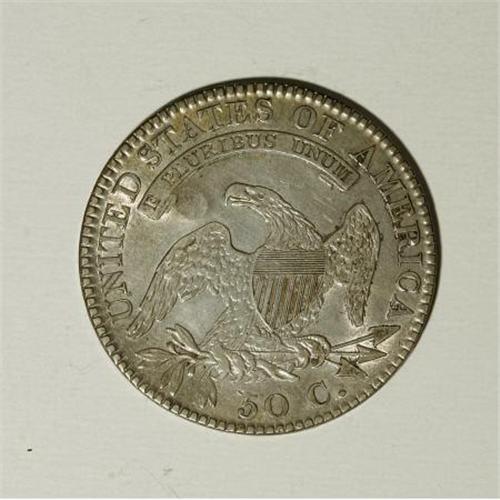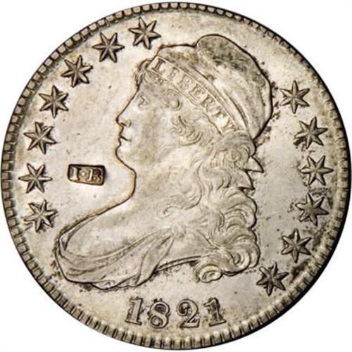 <B>1821 AU U.S. Bust Half Dollar Counterstamped I B.</B></I> This neat small counterstamp is unlisted in both the Brunk and Rulau catalogs. The host coin is a high grade 1821 Bust half dollar, indicating that the counterstamp was applied in the early 1820s and making this a coin for the sleuth in all of us.<BR><BR><b>Shipping:</b> Coins & Currency (<a target="_blank" href="http://www.heritageauctions.com/common/shipping.php">view shipping information</a>)