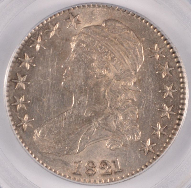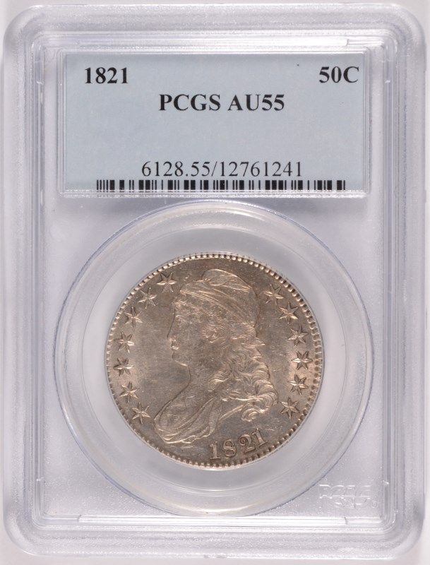 1821 BUST HALF DOLLAR, PCGS AU-55 VERY NICE