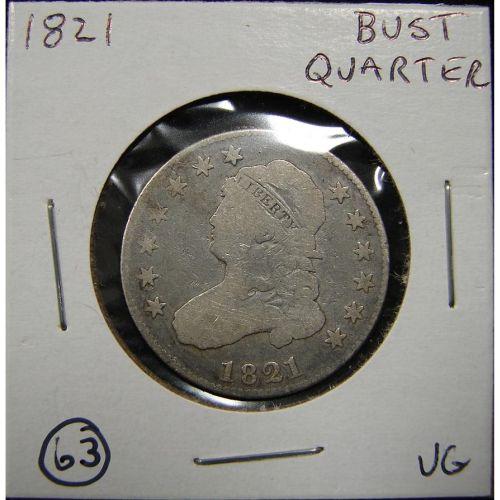 1821 U.S. BUST QUARTER. VG.