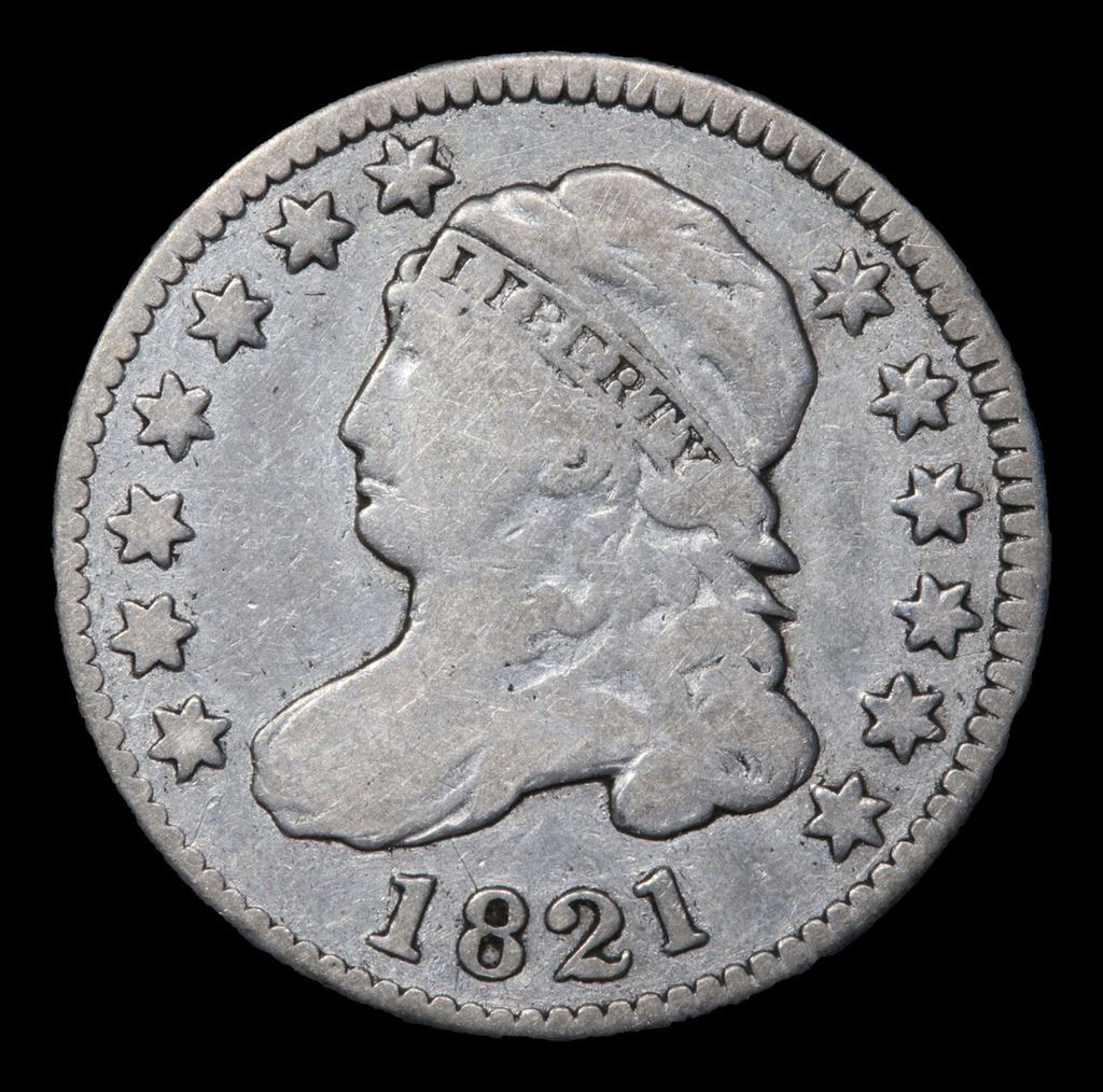 1821 Large date . Capped Bust Dime 10c Grades f+.