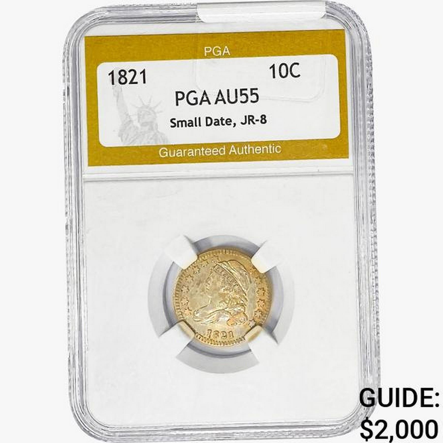 1821 Capped Bust Dime PGA AU55 Small Date, JR-8