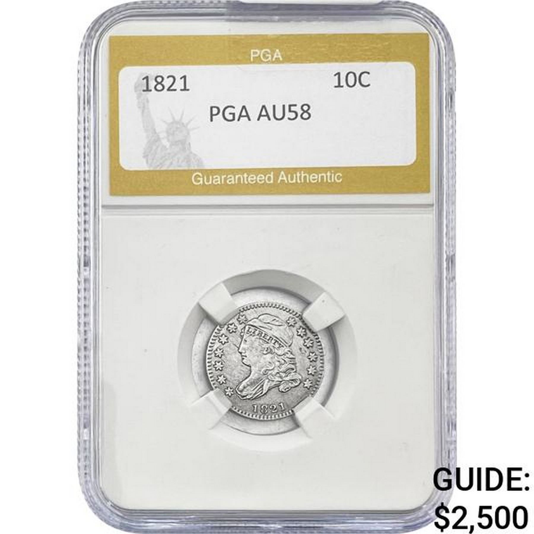 1821 Capped Bust Dime PGA AU58