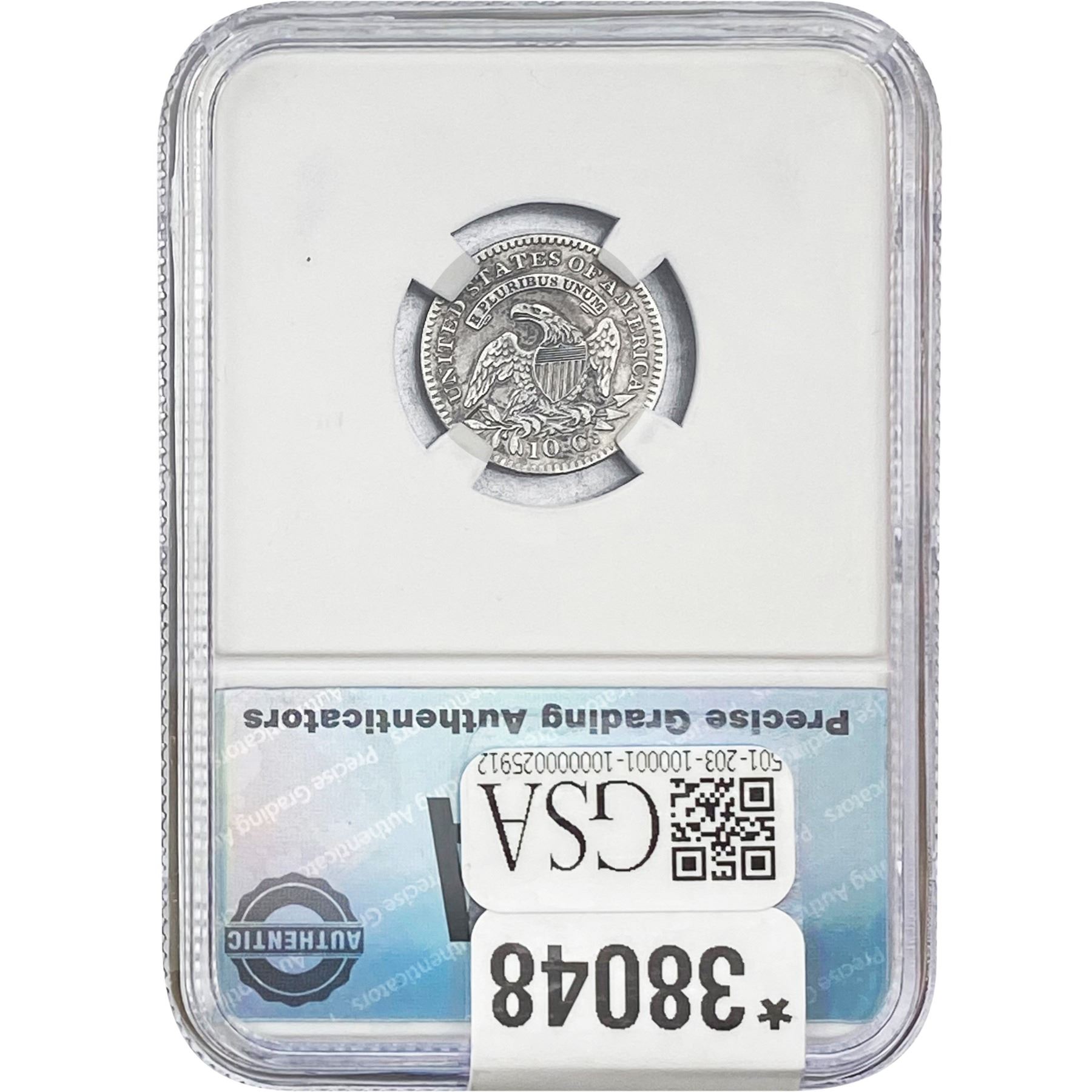 COINS AND CURRENCY LISTED IN GSA’S CATALOG AS GRADED AND ENCAPSULATED BY PCGS, NGC, ANACS, ICG, PCGS CURRENCY, PMG, PCGS BANKNOTE GRADING, CMC OR ANY OTHER THIRD-PARTY GRADING SERVICE ARE LIKEWISE SOLD “AS-IS” EXCEPT AS EXPRESSLY SET FORTH HEREIN. ALL THIRD-PARTY GRADING SERVICE GUARANTEES, INCLUDING AUTHENTICITY, ARE THE SOLE RESPONSIBILITY OF THE THIRD-PARTY GRADING SERVICE AND NOT WARRANTIES OR GUARANTEES OF GSA. BIDDERS SHOULD CONTACT THESE THIRD-PARTY GRADING SERVICES DIRECTLY WITH RESPECT TO ANY CLAIMS OR QUESTIONS THEY MAY HAVE CONCERNING THEIR GUARANTEES AND WARRANTIES. BIDDERS ACKNOWLEDGE AND AGREE THAT AUCTIONEER IS NOT BOUND BY OR LIABLE FOR ANY OPINION OR CERTIFICATION BY ANY THIRD-PARTY GRADING SERVICE. REMOVAL OF A PRODUCT FROM ITS PROTECTIVE CASING OR HOLDER OR ALTERATION OF ANY COIN HOLDER WAIVES ALL RIGHTS CONCERNING THE PRODUCT CONTAINED THEREIN.