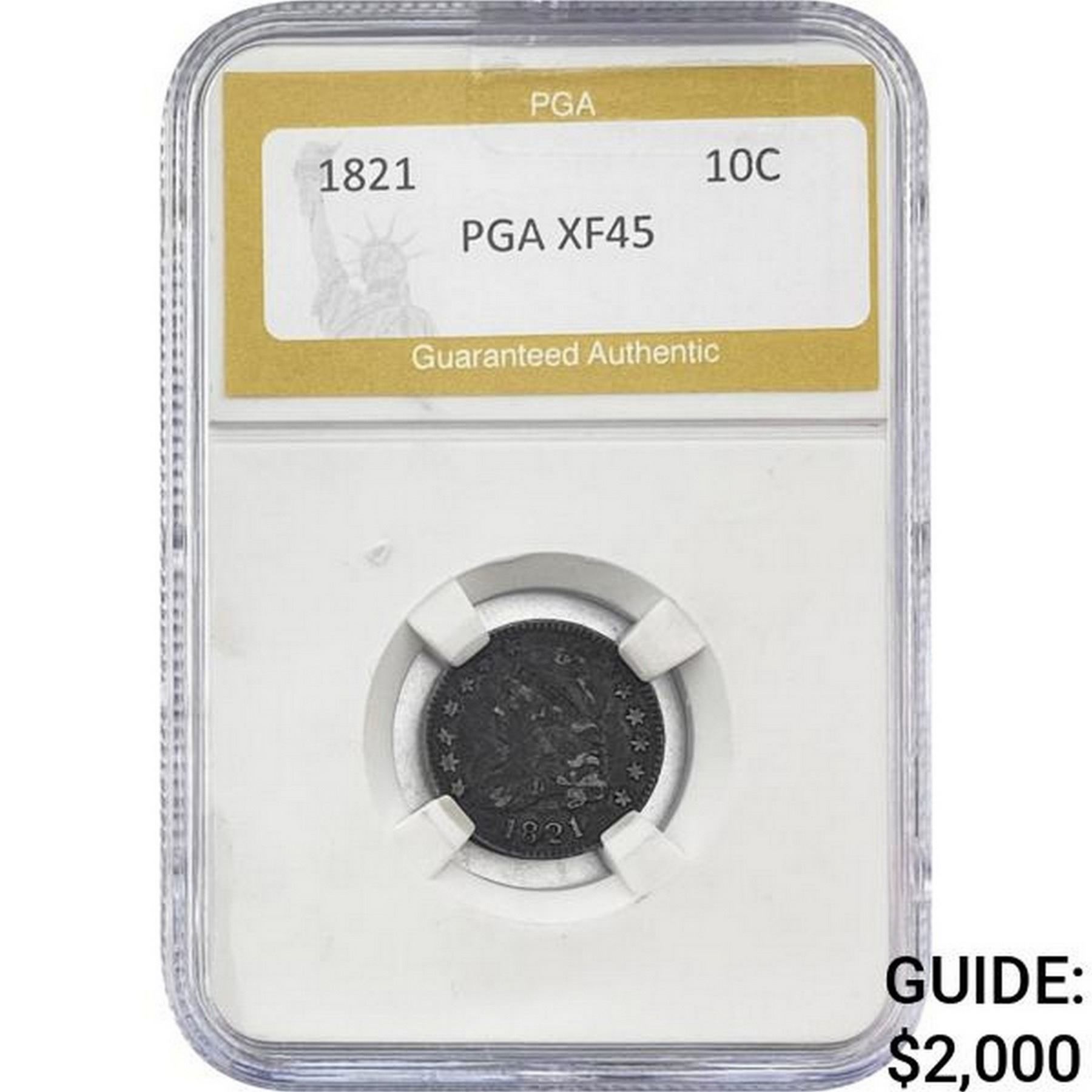 1821 Capped Bust Dime PGA XF45