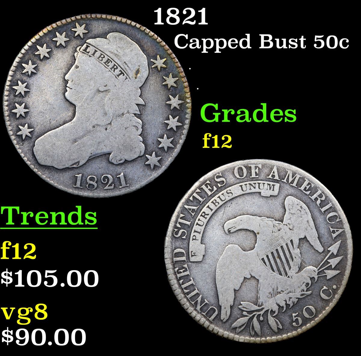 1821 Capped Bust Half Dollar 50c Grades f, fine