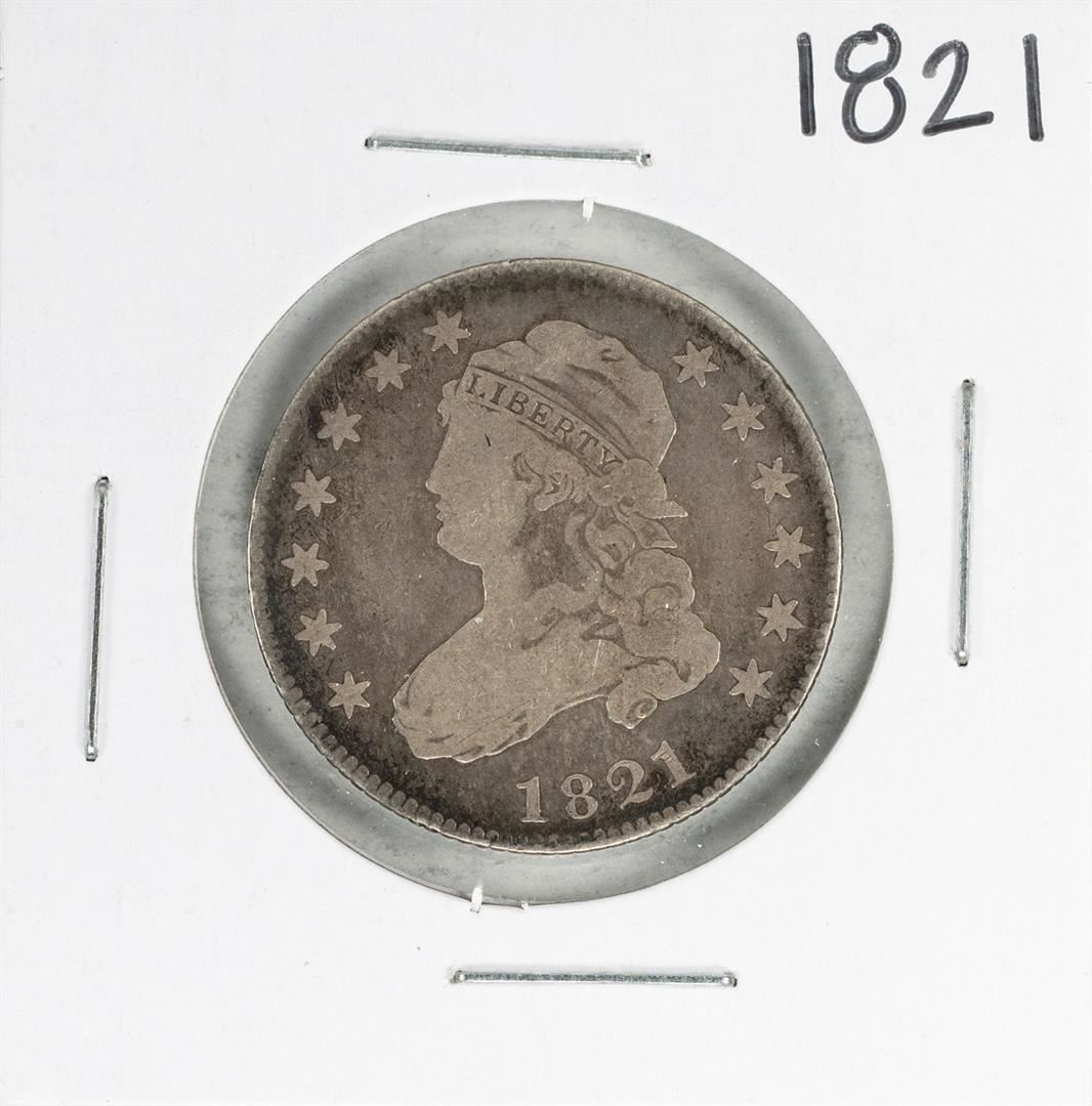 One 1821 Capped Bust Quarter Coin.