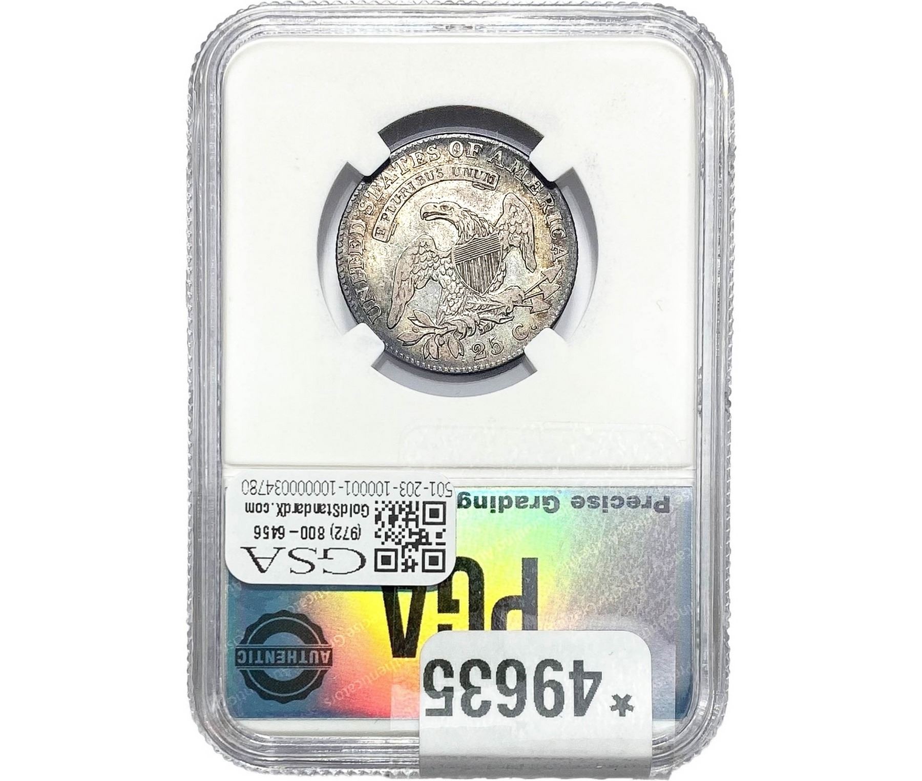 l. All non-certified coins and currency are guaranteed genuine, but are not guaranteed as to grade, since grading is a matter of opinion, an art and not a science, and therefore the description rendered by GSA or any third-party grading service may not agree with the opinion of others (including trained experts), and the same expert may not grade the same item with the same grade at two different times. GSA may, but is not obligated to, express an opinion as to non-certified numismatic items, in GSA’s opinion, or by its employees’ experience and the current interpretation of the American Numismatic Association’s standards as of the date the catalog was prepared. There is no guarantee or warranty expressed or implied that the grading opinions utilized by GSA, if any, will meet the standards of any grading service at any time in the future.